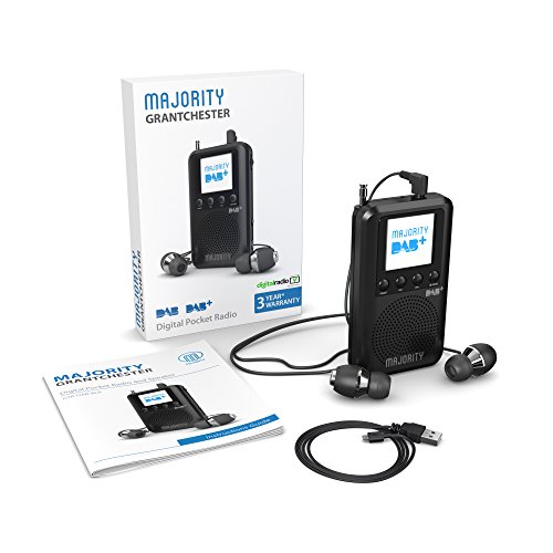 Grantchester mobili DAB/DAB + / radio digitale FM con built-in altoparlanti esterni, ricaricabili 20 + ore di riproduzione, personali, cuffie compatte incluse (nero/blu)