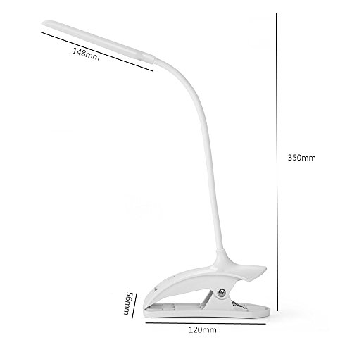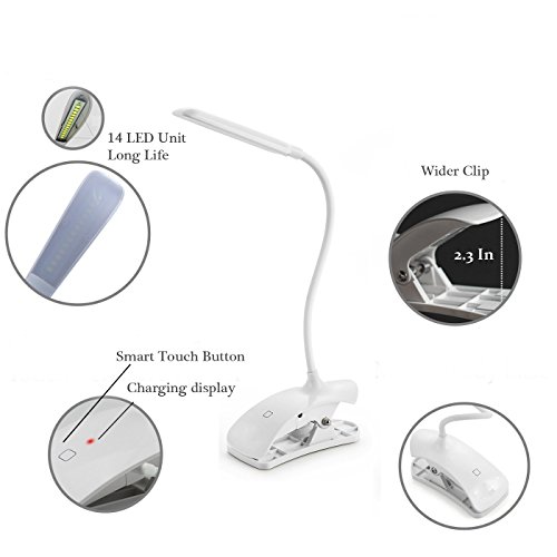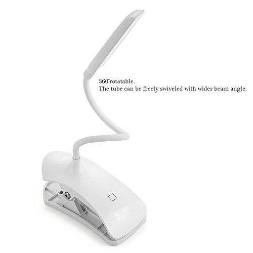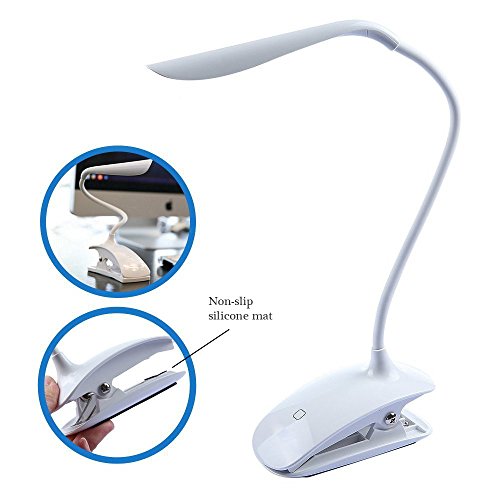 GranVela Clip Desk Lamp 2 in 1: Stand on Own/Clip Everywhere, Gooseneck Tube Touch Sensitive LED USB Rechargeable, Dimmable Portable Lightweight Desk Table Reading Bedside Lamp-White