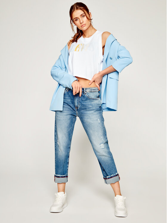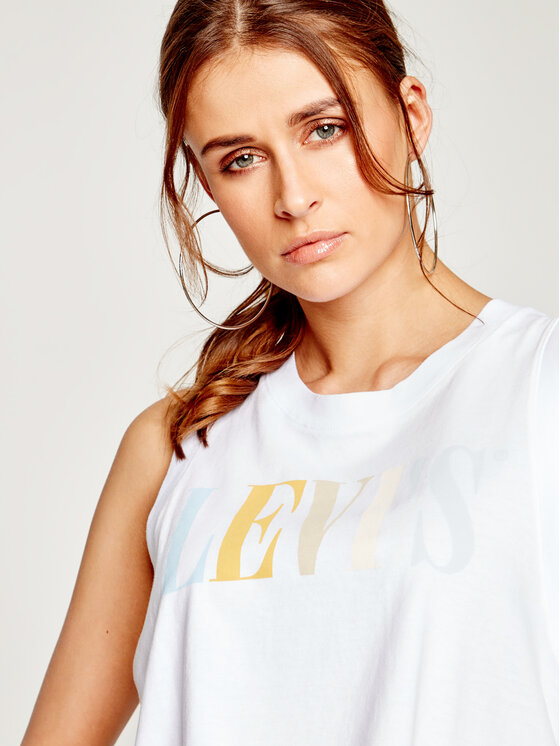 Top Graphic Crop Tank 39810-0037 Bianco Regular Fit