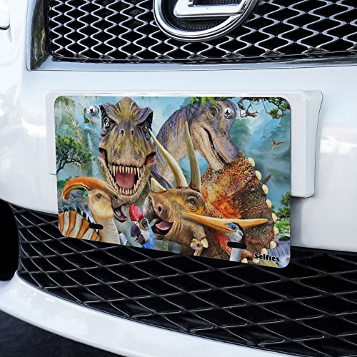 Graphics and More Dinosaur Jurassic selfie T-Rex Triceratops Brontosaurus Pterodattilo Parasaurolophus novità metal Vanity tag targa