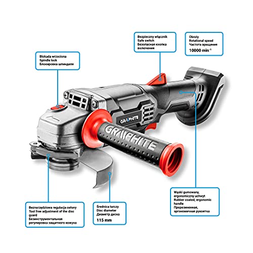 Graphite 58G003 Mini Smerigliatrice, 115 mm, Batteria 18 V, 50 W, 18 V, Nero, Taglia unica