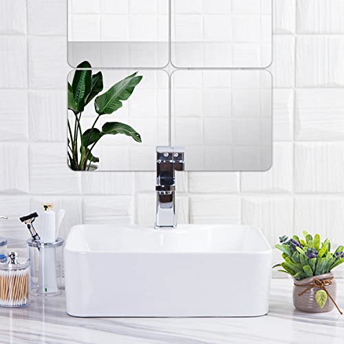 Graplan 4 piastrelle a specchio, autoadesive, 20 x 20 cm, autoadesive, flessibili, in acrilico, per la parete, decorazione in bagno e camera da letto
