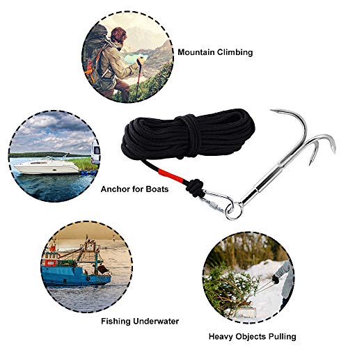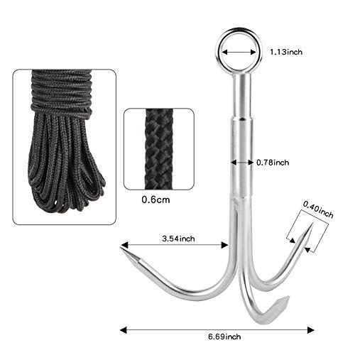 Ant Mag Grappling Hook Moschettone Arrampicata con corda in nylon da 20 cm, rimozione dell'albero, Large Hook