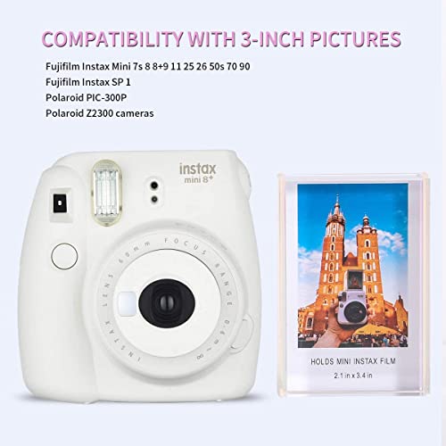 Ampiamente utilizzato: compatibile con le pellicole per fotocamera istantanea scattate da Fujifilm Mini 7s 8 8+ 9 11 25 26 50s 70 90/Fujifilm SP 1/Fujifilm Instax SP 2/Pringo P231/Polaroid PIC-300P/Polaroid Z2300/LG PD 233/LG PD 239. Adatto anche per Film di HP Sprocket/Polaroid ZIP Mobile Printer, può scattare un'immagine in formato 2,1 x 3,4 pollici o una più piccola.