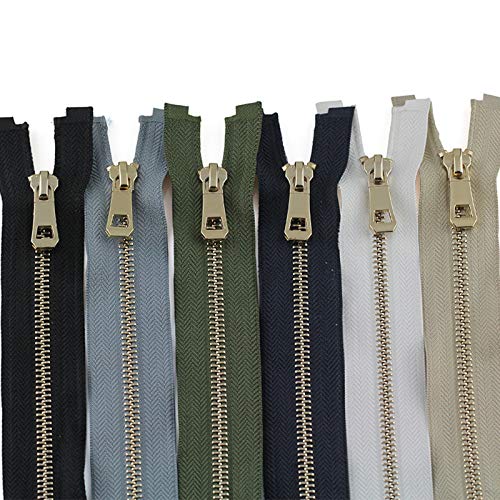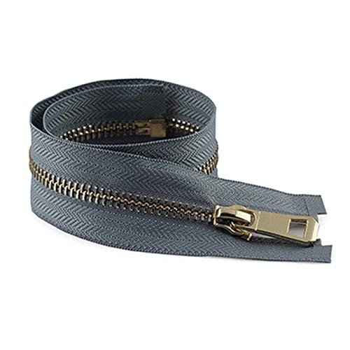 Grasschen 2 Pezzi 5# Chiusura Lampo del Metallo Oro Open-End Zipper Serratura Automatica Zipper Grigio, 45cm