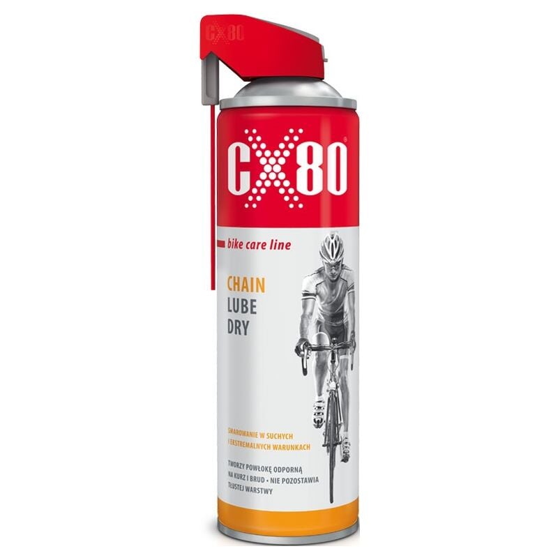 CX80 LINEA BIKE CARE • CHAIN LUBE Lubrificante secco per catene di bicicletta. Un grasso versatile ideale per l'uso in condizioni asciutte e polverose. CARATTERISTICHE: Lascia un rivestimento asciutto e pulito, resistente alla polvere e allo sporco. • Non lascia strato di grasso. • Protegge gli elementi lubrificati da ruggine e corrosione. • Non verrà lavato via dall'acqua. • Riduce l'attrito e il rumore • Resistente a pressioni estreme • La consistenza rende più facile raggiungere i punti difficili da raggiungere • Penetra facilmente nei componenti lubrificati e ne aumenta la durata APPLICAZIONE: Destinato all'uso in tutti i componenti della bicicletta che richiedono lubrificazione, ad es. Ad esempio catene, dischi, deragliatori, ecc. • protegge le parti immediatamente dopo la pulizia.**