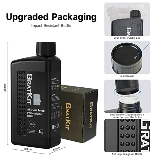GratKit Stampa 3D Come Resina ABS Like, non Fragile, Polimerizzazione Rapida, Resina Polimerizzante UV ad alta Durezza 405nm, Compatibile con Stampanti SLA, LCD e DLP, 1000 g, Grigio