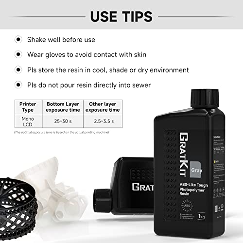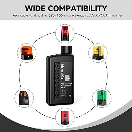 【Applicabile alle Stampanti in Resina di Consumo】 La resina per stampante 3D di tipo GratKit ABS è compatibile con tutte le stampanti in resina LCD e DLP di consumo di produttori come GratKit, Nova3d, QIDI TECH, Phrozen, Creality, Anycubic, Elegoo.