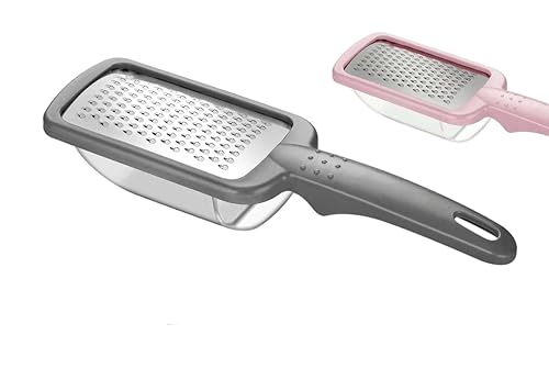 Grattugia Formaggio Manuale, con Contenitore, Gratta Formaggi, Scorza Agrumi, Noce, Aglio, con Manico (Grigio)