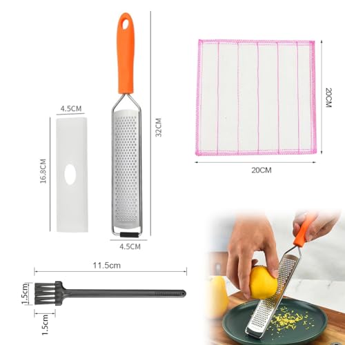 Grattugia Formaggio Manuale,Grattugia Limoni Lunga e Stretta,Grattugia in Acciaio Inox,Grattugia per Formaggio e Limone,con Impugnatura in Gomma Morbida,Spazzola + Strofinaccio in Cotone,long
