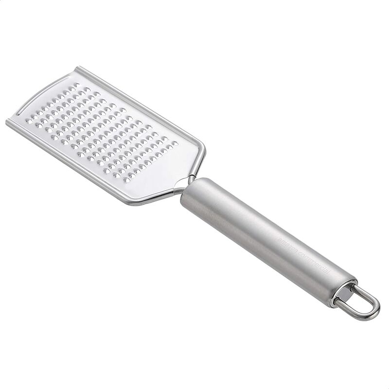 Acciaio inossidabile resistente: Lame in acciaio inossidabile 18/0 da 0,3 mm per prestazioni affidabili e di lunga durata Manico solido: Il manico in acciaio inossidabile da 0,45 mm offre una presa comoda e sicura per un controllo ottimale Resistente alla flessione: costruzione robusta con telaio rinforzato per garantire che la grattugia non si pieghi durante l'uso.Utilizzo Versatilità versatile: le lame affilate grattugiano senza sforzo una varietà di cibi, inclusi formaggio, limoni, lime, cioccolato, cocco, zenzero e altro ancora.