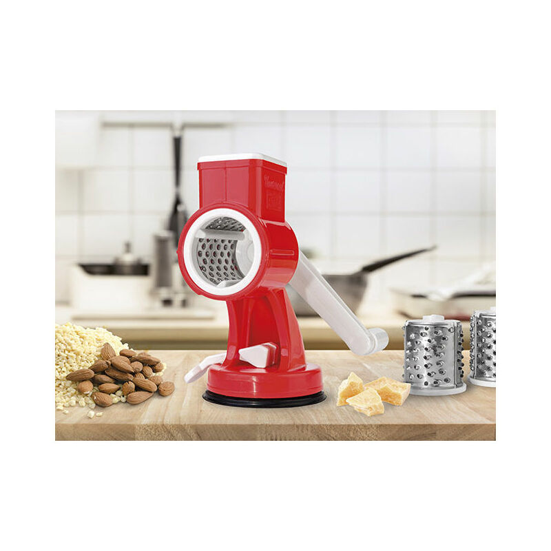 Codice: 3C-RGM400020 Marca: RIGAMONTI. Grattugia 2 rulli Universal. Un rullo grattugia per formaggio. pane secco. frutta secca e cioccolato. Un rullo per grattugiare alla julienne la verdura. Corpo in polipropilene. Rulli in nylon 66 con iserti in lame inox 430. Ventosa in gomma caucciù con movimenti in nylon 66. In dotazione: proteggidita e contenitore concon coperchio riponibile in frigorifero.