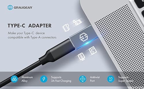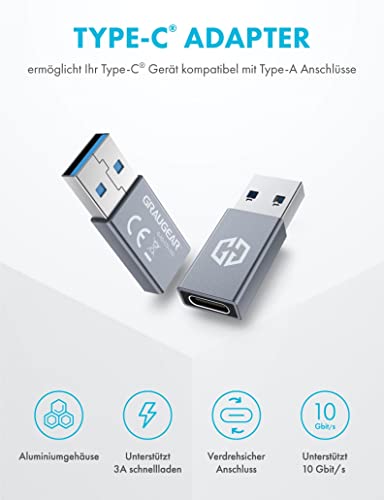 GRAUGEAR | Adattatore da USB-C a USB-A | USB 3.2 Gen2 10 Gbit/s | USB Type-C® femmina a USB-A maschio | Custodia in alluminio | G-AD-CTA-10G