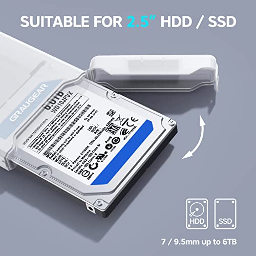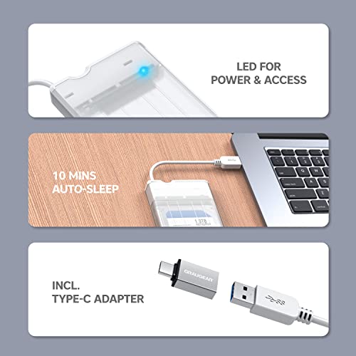 GRAUGEAR | Alloggiamento esterno per SATA SSD/HDD da 2,5 pollici | con adattatore USB-C | USB 3.0 UASP | installazione senza attrezzi | cavo integrato | G-2503-AC