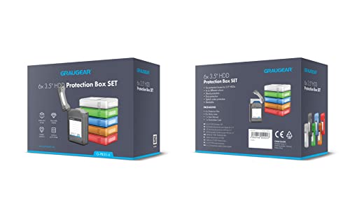 GRAUGEAR G-PB35-6 - Custodia per hard disk da 3,5", confezione da 6 pezzi, colore: Bianco/Rosso/Verde/Arancione/Blu/Nero