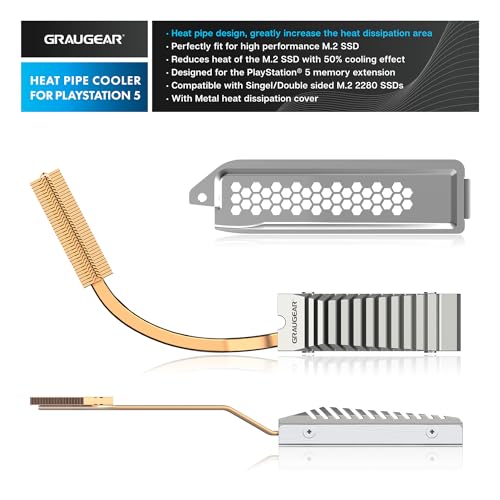 GRAUGEAR G-PS5HS01-Cov - Dissipatore di calore per SSD M.2 (2280) con copertura, kit di raffreddamento per PS5, per espansione di memoria PS®5, 4 cuscinetti termici inclusi