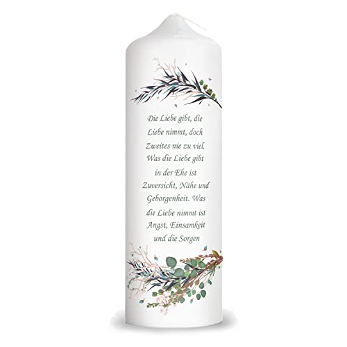 GRAVURZEILE Candela stampata, motivo floreale, personalizzabile, con nome, data e testo desiderato, regalo per matrimonio alla coppia di sposi, 8 cm x 25 cm (diametro x altezza) bianco