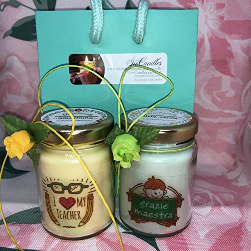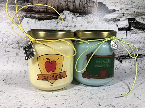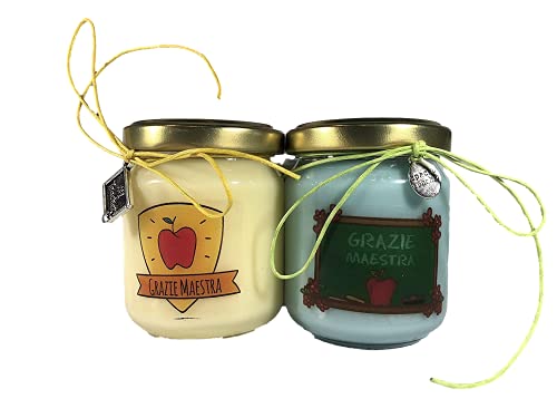 Grazie Maestra 2 vasetti con candele di cera di soia e oli essenziali - Regalo per la Maestra Fine anno scolastico Ritorno a scuola Regalo di Natale