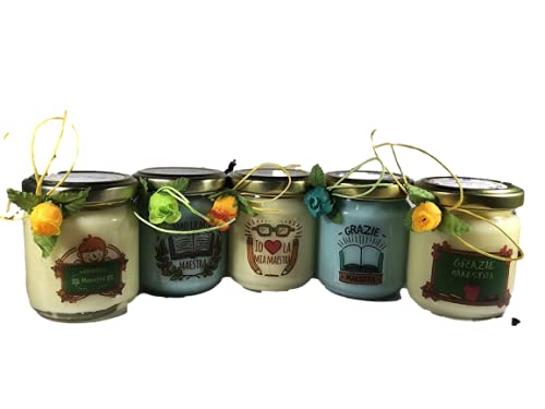 Grazie Maestra 5 vasetti con candele di cera di soia e oli essenziali - Regalo per la Maestra Fine anno scolastico Ritorno a scuola Regalo di Natale