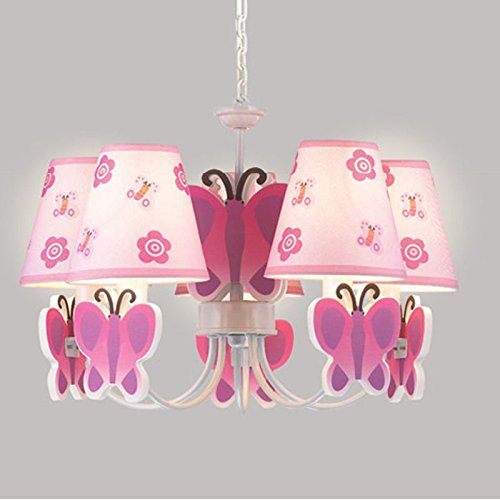 Graziosa farfalla rosa principessa camera lampadario ragazza camera lampada a sospensione bambini bambini lampade a sospensione (5 luci)