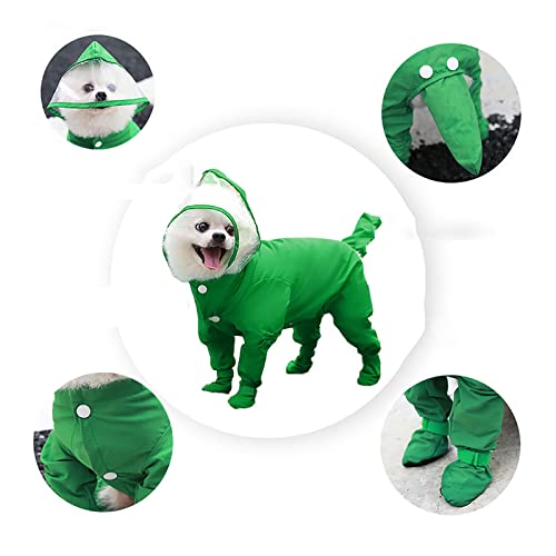 Grazioso impermeabile per cani da compagnia, copertura completa del corpo con cappello, stivali da pioggia, giacca impermeabile per cani, mantello con cappuccio verde M