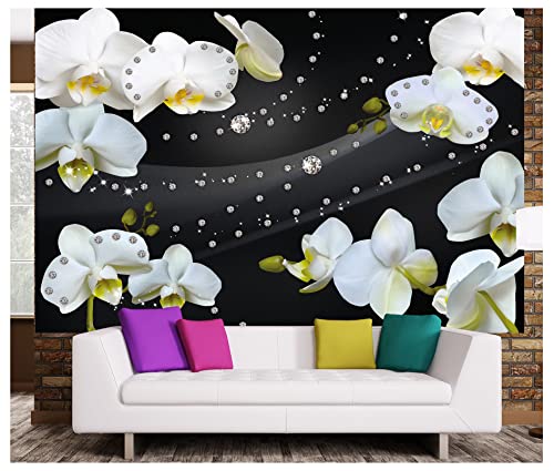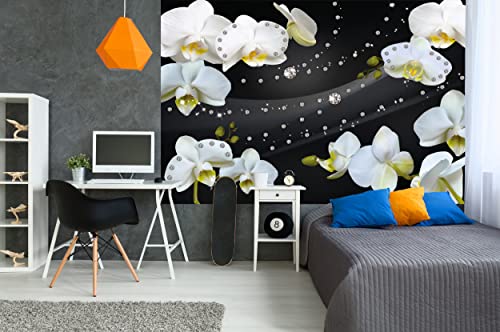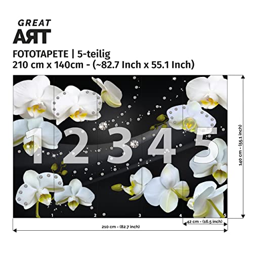 Great-art Poster XXL, motivo: Orchidee con diamanti glamour su sfondo nero, Carta, 210 cm x 140 cm - 5 Teile