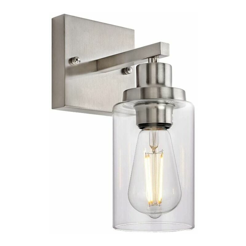 Quantità: 1 pezzo Il nichel spazzolato del processo di elettroplaccatura rende la luce non facile da sbiadire, antiossidante, resistente alla corrosione, facile da pulire, prevenendo così la ruggine e più duratura in ambienti umidi. Il paralume cilindrico in vetro trasparente che diffonde dolcemente la luce quando l'apparecchio è illuminato, dona un tocco elegante alla tua casa. TIPO di lampadina -- Supporto per qualsiasi lampadina a LED /CLF/ o altra lampadina sotto i 60 W con attacco E26 per queste pareti interne. Ideale come paralume da parete per corridoio, applique da soggiorno, applique da parete per camera da letto o luce da toeletta per il bagno e così via, i paralumi in vetro trasparente aggiungono un tocco di arredamento moderno. FACILE INSTALLAZIONE -- Tutto l'hardware di montaggio necessario per l'installazione è inclusa nel pacchetto. Basta seguire le istruzioni illustrate per il montaggio e l'installazione! Il design dei rivestimenti murali ne consente l'installazione