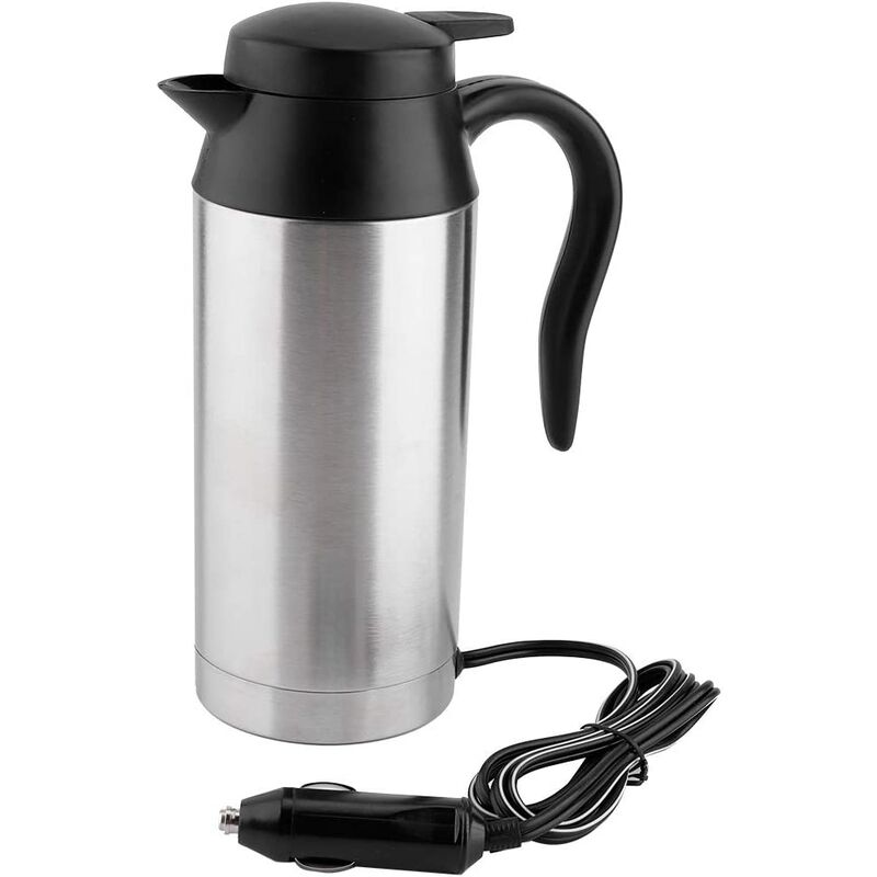 Comodo bollitore da viaggio - : Bollitore elettrico da 750 ml, uno strumento da viaggio necessario per la maggior parte dei portabicchieri per auto. Questo bollitore per auto può sempre mantenere caldo il tuo caffè/tè. 【Materiale sano】: Acciaio inossidabile 304 importato a doppio strato, manico in plastica non tossico resistente alle alte temperature, antiruggine e durevole. 【Tazza termica per auto a prova di perdite】: Completamente sigillata con coperchio dell'interruttore, apertura della tazza a tenuta stagna, nessun trabocco d'acqua. 【Facile da riscaldare】: Alimentazione 12V, inserire il cavo di alimentazione nella presa accendisigari. Comincia a bollire quando si accende la luce rossa. Dopo aver raggiunto i 100°C, il dispositivo passerà automaticamente alla resistenza termica e si accenderà la spia verde (scollegare il cavo di alimentazione quando si accenderà la spia verde). Con una funzione di visualizzazione e controllo della temperatura, il dispositivo si spegne