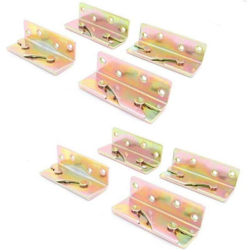 spessore extra per un migliore supporto, fissa il tuo letto in un batter d'occhio Set di 8 staffe per giroletto, accessori per montanti letto, 4 destri e 4 sinistri, realizzati in metallo temprato, ideali per letti in legno di tutte le dimensioni. Questi raccordi per binari del letto sono progettati per qualsiasi costruzione di letti in legno o per sostituire vecchie staffe su un letto esistente. È facile da usare, basta avvitare la piastra a filo con