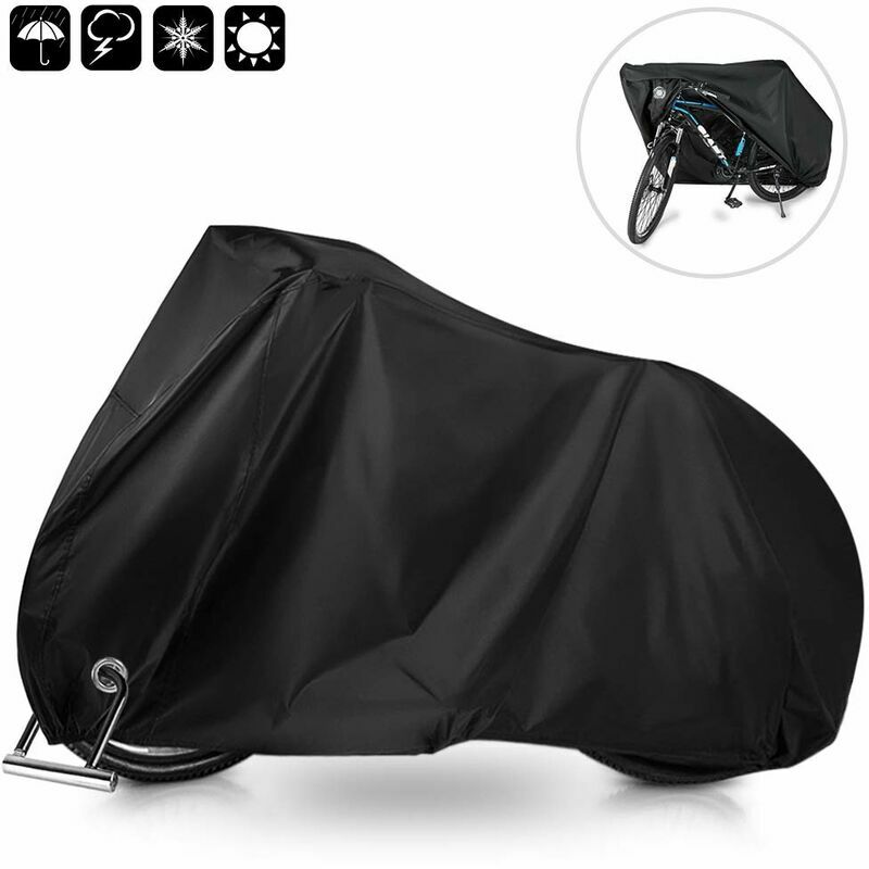 Protezione ottimale: la copertura impermeabile per bicicletta offre una protezione perfetta contro pioggia, neve, sole, corrosione, sporco e graffi. Design antifurto: il design del foro di bloccaggio anteriore per lucchetti a cavo, catena o U/D. Questo design del foro di blocco può proteggere la tua bici dal furto. Ampia compatibilità: 200 x 70 x 110 cm (78,7 x 27,5 x 43,53 pollici (copertura impermeabile per bici), 24 x 18 cm (9,4 x 7 pollici) (custodia), adatta per la maggior parte delle mountain bike, city bike, bici da strada, motociclette e altro ancora. Materiale superiore e rivestimento in PU: il prodotto è realizzato in poliestere 210D di alta qualità e rivestito con rivestimento in PU sviluppato, ad alta densità e durata, stabile e super impermeabile. Design più sicuro e confortevole: l'orlo elastico con doppia cucitura e la fibbia appositamente progettata per una vestibilità comoda ti tengono al sicuro giornate ventose.
