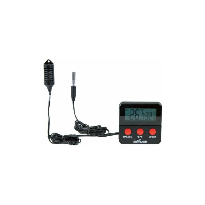 Questo termoigrometro digitale con un display di facile lettura e un cavo del sensore extra lungo sarà l'ideale per misurare la temperatura e l'umidità nel terrario. Visualizza accuratamente l'umidità atmosferica e le letture della temperatura per i terrari dei rettili. Con il termoigrometro digitale, hai sempre un rapporto in tempo reale dell'ambiente di vita dei tuoi rettili animali in modo da poter personalizzare il clima artificiale degli habitat dei tuoi animali domestici. Ha un cavo extra lungo (90 cm) che consente il posizionamento flessibile del sensore. Questo dispositivo fornisce un monitoraggio preciso della temperatura e dell'umidità dell'aria nel terrario da 0 °C a 70 °C (da 32 °F a 158 °F) e dal 20% al 99% di umidità. Colore: Nero Materiale: plastica Tipo di batteria: Pile a bottone al litio Dimensioni: 6 x 6 cm (L x L) Il cavo extra lungo consente il posizionamento flessibile del sensore Per un monitoraggio preciso della temperatura e dell'umidità dell'aria nel terrario