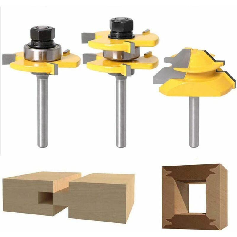 Taglierina angolare con bloccaggio a 45 gradi: Diametro gambo: 6,35 mm. Diametro lama: 51 mm. Dimensioni PCB: 12,7 pollici 19 mm. Materiale: manico in acciaio al carbonio + nativo Lega YG6X, protezione dagli urti. 2 pezzi. Kit maschio e femmina - Fresa a T con 3 scanalature. Materiale dell'alloggiamento: lega primaria YG6X di alta qualità. Materiale della lama: carburo di micrograna industriale. Gambo: 6,35 mm. Larghezza del dente: 6,35 mm. Profondità del dente: 12,7 mm. Applicabile alle dimensioni della piastra: 13-19 mm. Velocità massima: 12000 Applicabile a tutte le dimensioni del piede: 12,7-24 mm.