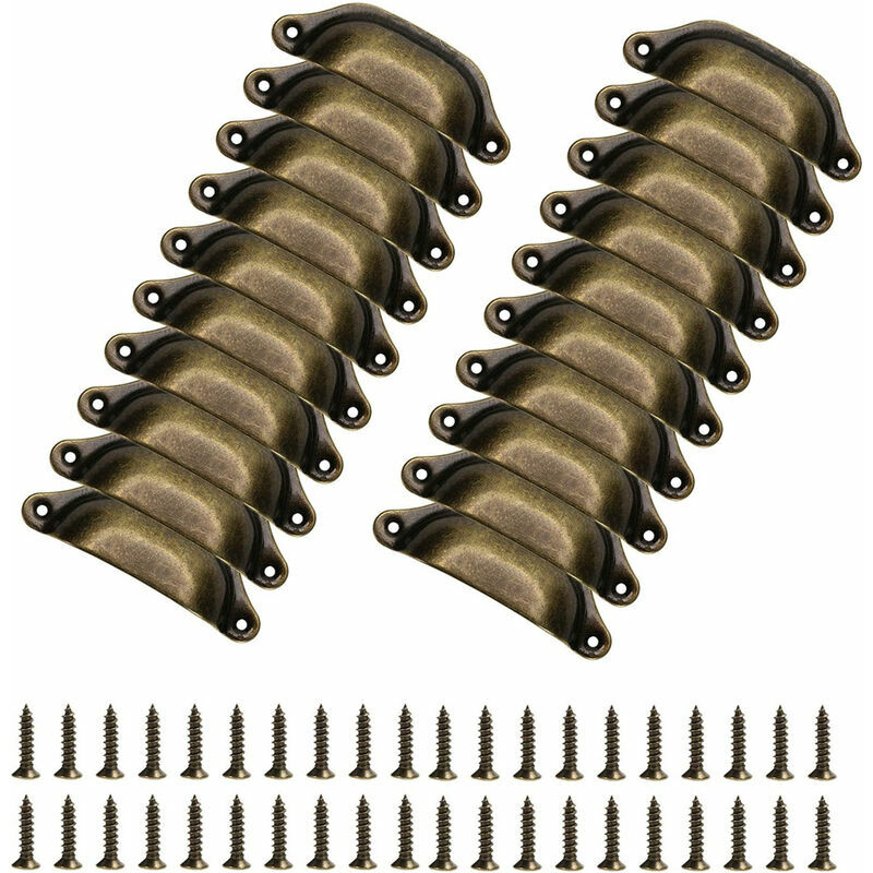 Set di 20 maniglie vintage in bronzo (98×35mm) con 40 viti incluse. Realizzate in ferro, la superficie è lucida e i bordi sono lisci e senza sbavature. Con una comoda metà -moon design, protegge le mani e i mobili dai graffi.Usato per sostituire le maniglie dei mobili vecchie o danneggiate e dare un nuovo aspetto ai tuoi mobili.