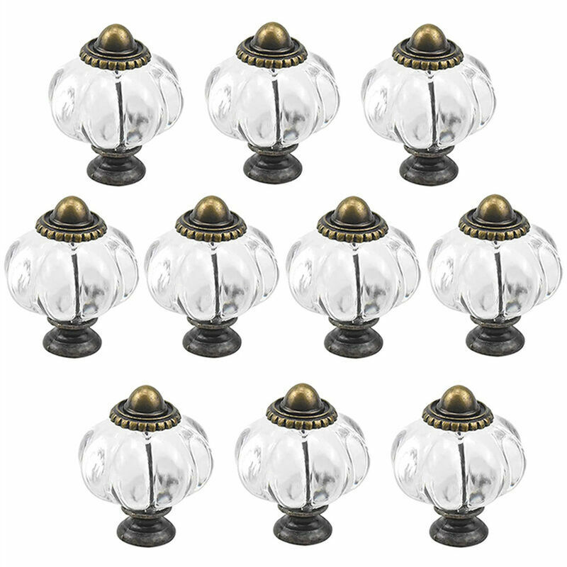 Un set di 10 pomelli trasparenti, ogni dimensione è 30×30×36 mm, comprese le viti. -Questi pomelli a forma di zucca in acrilico hanno un aspetto classico. -La decorazione in bronzo conferisce loro un forte senso del retrò, adatto alla maggior parte dei mobili. -Basta stringere le viti per installare facilmente queste maniglie per mobili.