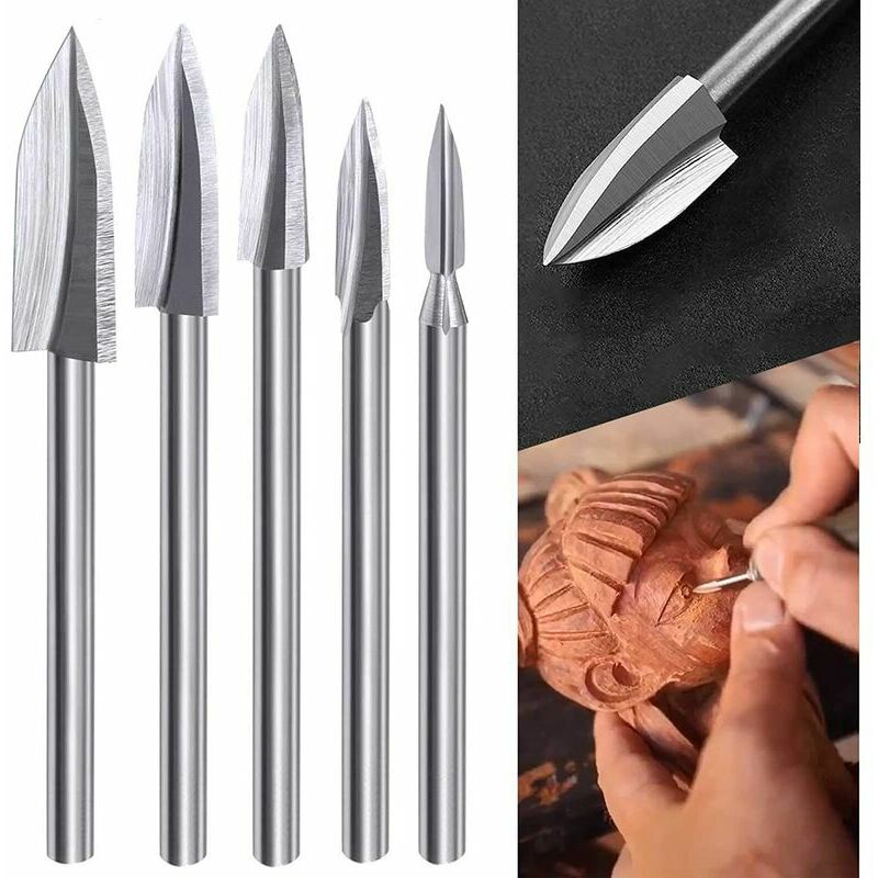Materiale Realizzato in acciaio rapido di alta qualità per una lunga durata, forte e affilato, anticorrosivo, eccellente resistenza all'usura. Strumenti per incisione da 5 pezzi, confezionati in una scatola trasparente. Design a tre lame Maggiore efficienza, strumento ideale per lavori di precisione come scanalature profonde, v -spacchi, motivi curvi e linee. Il design a tre lame rimuove rapidamente e automaticamente i trucioli dal foro, adatto per intagliare, incidere, rettificare, forare e altro, e lasciare una superficie liscia e finita. < /p> Strumento perfetto per Fai da te e riparazioni domestiche Ampiamente utilizzabile su diversi tipi di legno per fai da te, intaglio del legno, modellismo, realizzazione di case per animali domestici, riparazione di case e altri lavori su legno. Uno strumento di scultura essenziale per creare il tuo capolavoro. 5 diverse dimensioni (3 mm, 4 mm, 5 mm, 6 mm, 8 mm) per soddisfare le diverse esigenze. Asta universale L'asta da 1/8 di pollice si
