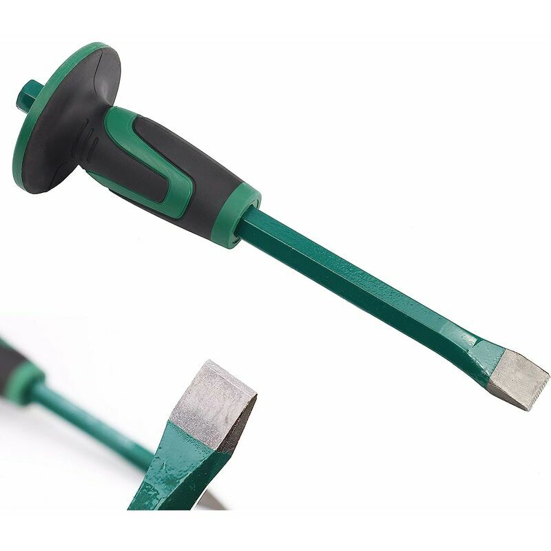peso: 0,68 kg Lo scalpello per impieghi gravosi è perfetto per tagliare, spaccare, intagliare, demolire mattoni, muratura, cemento ecc. L'impugnatura e la protezione della mano assorbono gli urti forniscono un'eccellente protezione contro colpi e colpi mancati, garantendo un taglio facile e preciso Quantità: 1 pezzo Colore verde