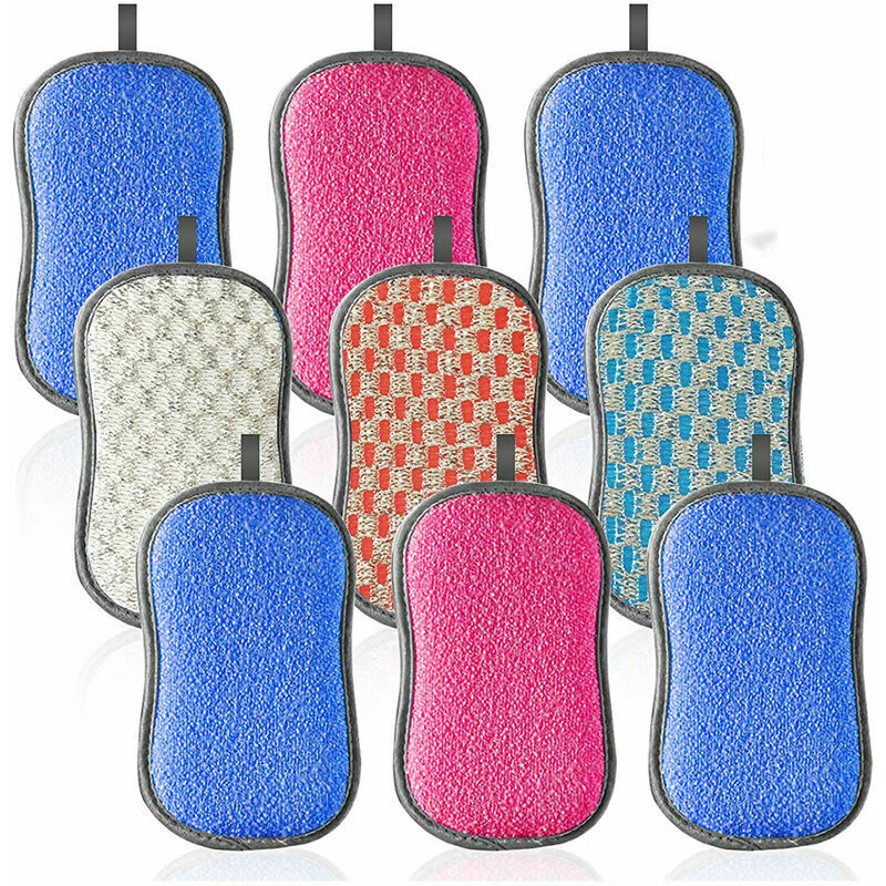 Spugna per la pulizia a doppia faccia, nessun danno alla pentola, nessun olio, nessun graffio, nessuna scoria Decontamina la superficie di attrito, non danneggia facilmente il rivestimento, può pulire le macchie ostinate, ma è morbida e non facile da danneggiare padella. Pulizia efficiente, facile da pulire, superficie in fibra ultra fine, non appiccicosa, facile da pulire. Ricco di schiuma, risparmio di manodopera e facile da strofinare, l'alta la spugna elastica ha bisogno solo di una piccola quantità di detersivo per produrre schiuma. Design sospeso, facile da prendere, prendilo quando lo usi, appendilo ad asciugare, non è facile allevare batteri. Vuoi una casa sicura, sana ed ecologica? La nostra spugna riutilizzabile ha proprietà antibatteriche, può essere lavata in lavatrice e può essere riutilizzata dopo il lavaggio. Pulisci tutto dal pavimento al soffitto rispettando la terra: la nostra spugna ha una forma ergonomica e ha due lati per aumentare efficienza. La superficie