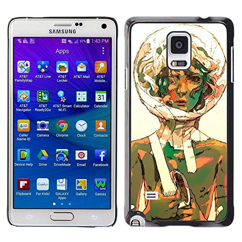 GREAT PHONE CASE GIFT // Cassa del Telefono mobile Custodia Rigida PC Coperchio decorativo Caso / Hard Case for Samsung Galaxy Note 4 /Bolla del ritratto Tuta spaziale ragazza riccia/Bubble Portrait Art Space Suit Girl Curly