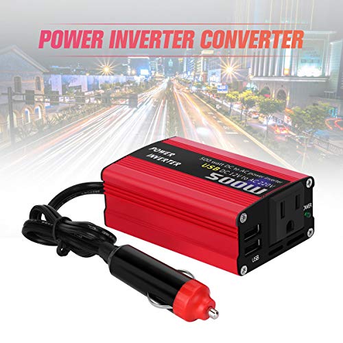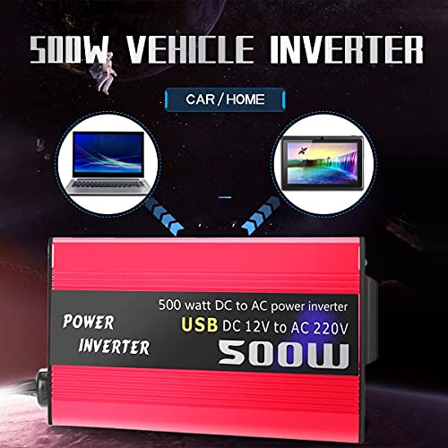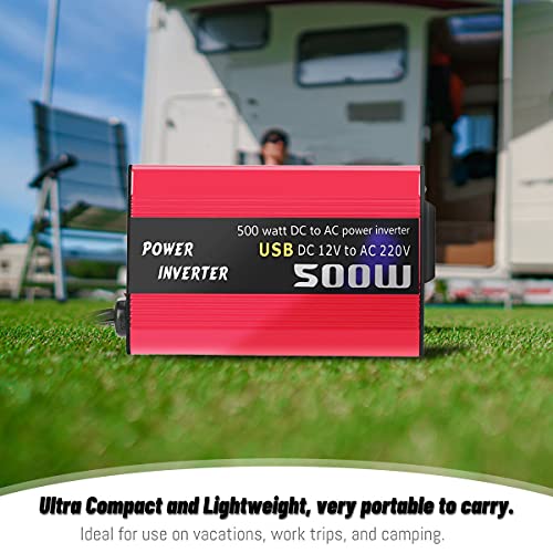 Greatangle-UK Convertitore di Alimentazione da DC a AC da 500 W DC 12V a 110 V 220 V AC Trasformatore Automatico per Inverter per Auto con Doppio Adattatore per Auto USB Rosso 220 V
