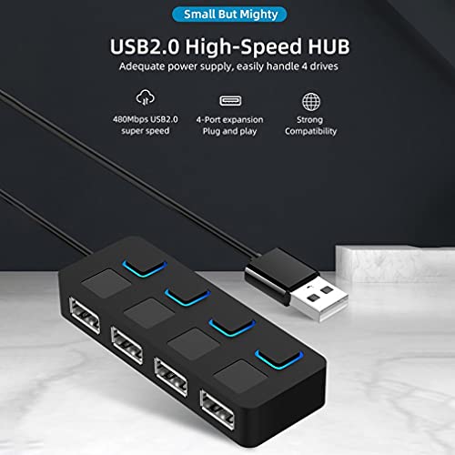Greatangle-UK Hub USB 2.0 Multi USB Splitter 4 Porte Expander Hub USB 2.0 Multiplo USA Adattatore di Alimentazione Hub USB 2.0 con Interruttore per PC Computer Nero 84 * 32 * 14mm