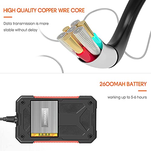 4. Batteria ricaricabile da 2600 mAh: l'endoscopio ha una batteria incorporata, che può funzionare 3-4 ore dopo la ricarica completa. perfetto per l'ispezione di elementi mancanti, tubazioni, valvole, cavi, percorsi, perdite, corrosione, parti rotte, danni, blocchi, parti.