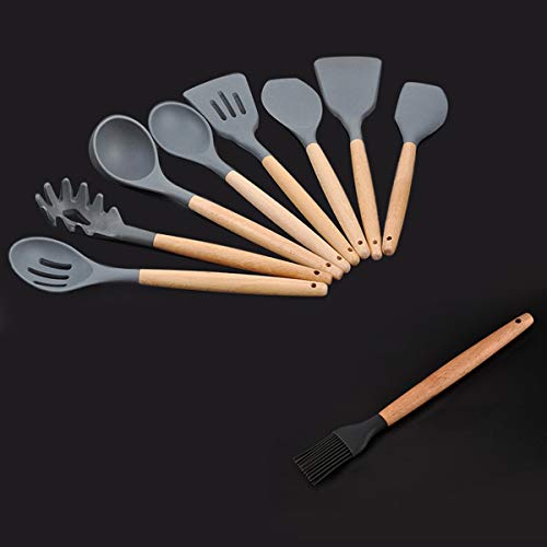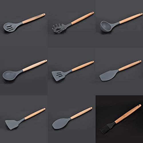Greatangle Utensile da Cucina con Manico in Legno in Silicone Set di Utensili per spatola Antiaderente Utensili da Cucina Utensile da Cucina Grigio Scuro Pala