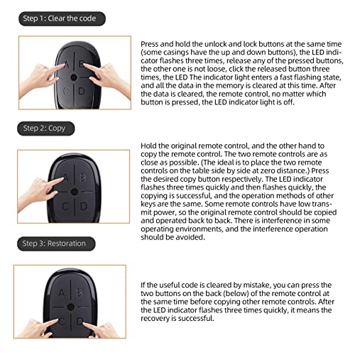 ✹For 433.92mhz: This universal Remote Control (433.92 MHZ) is simple pairing with remote control original. Copy 99.99% of common fixed and learning code remote controls.