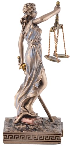 Dea greca Justitia con bilancia, in pietra artificiale, dipinta a mano con colore bronzo, by Veronese