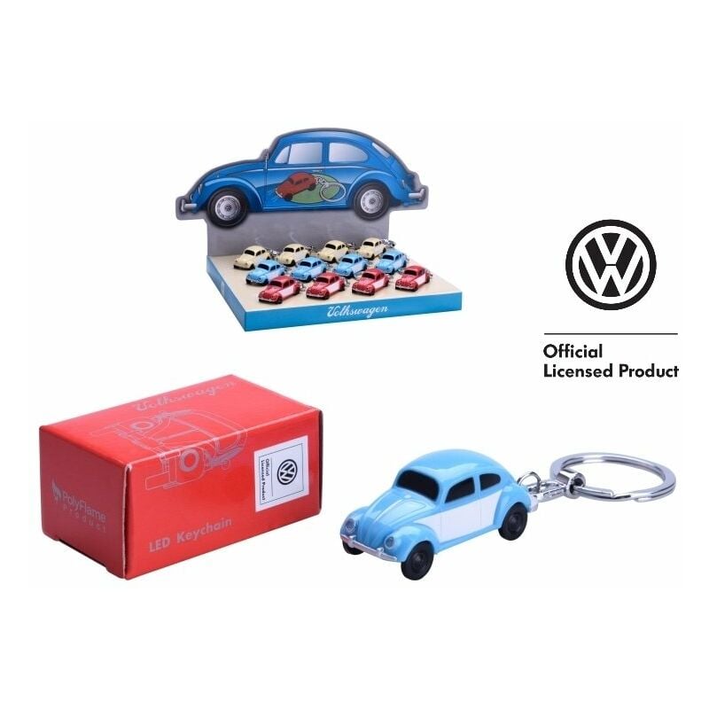 Grazioso portachiavi in metallo che riproduce lo storico maggiolino della Volkswagen. Con un pulsantino posto sul tettuccio potrete attivare i fari led della piccola automobilina. Original License Volkswagen