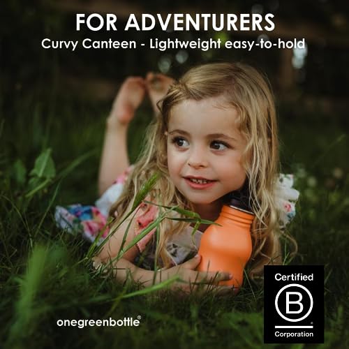 One Green Bottle - Borraccia in metallo con cannuccia, in acciaio inox, bottiglia da mensa curvy, per sport e viaggi, 350 ml, facile da sbucciare, arancione, tappo sportivo con cannuccia