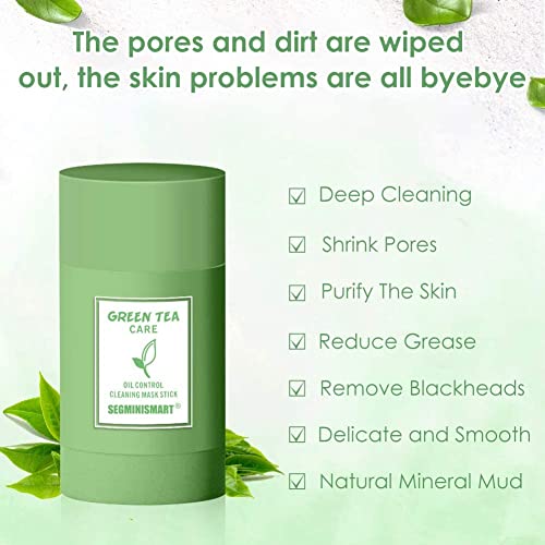 Green Tea Cleansing Mask,Green Mask Stick,Maschera al Tè Verde,Green Tea Purifying Clay Stick Mask,Punti Neri Rimozione Green Mask Stick,Idratazione della Pelle,Regolazione Acqua Olio in Equilibrio