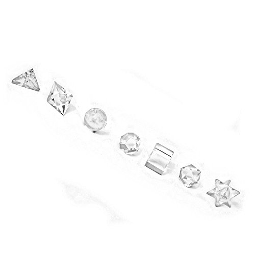 Green Cross Toad 7 Trasparente Quarzo Roccia Solidi Platonici Geometria Sacra Guarigione di Cristallo Feng Shui - con Custodi Borsellino