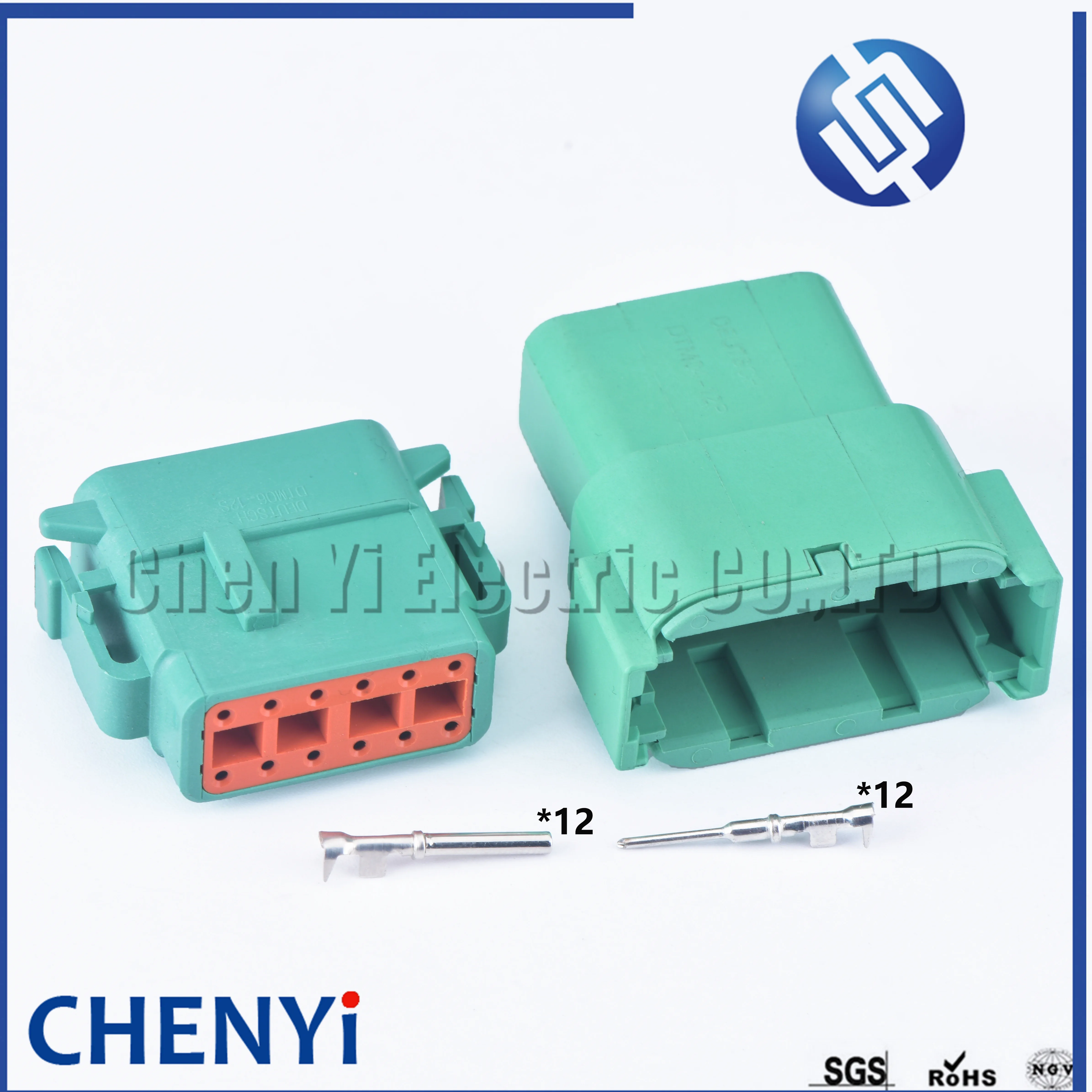 Green Deutsch 12 Pin Sealed waterproof connector DTM06-12SC DTM04-12PC Automotive Connector Heavy Truck Wiring Harness Plug
