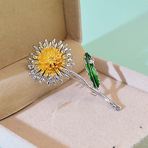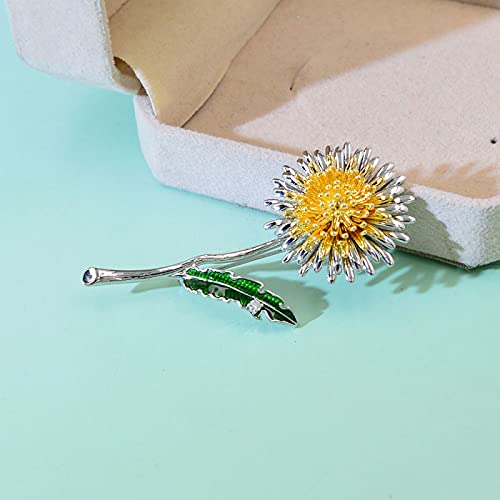 Green Foglia Giallo Dandelion Flower Smalto Brooches Donne Donne da Sposa Piante da Sposa Pins Pins Regali da Festa